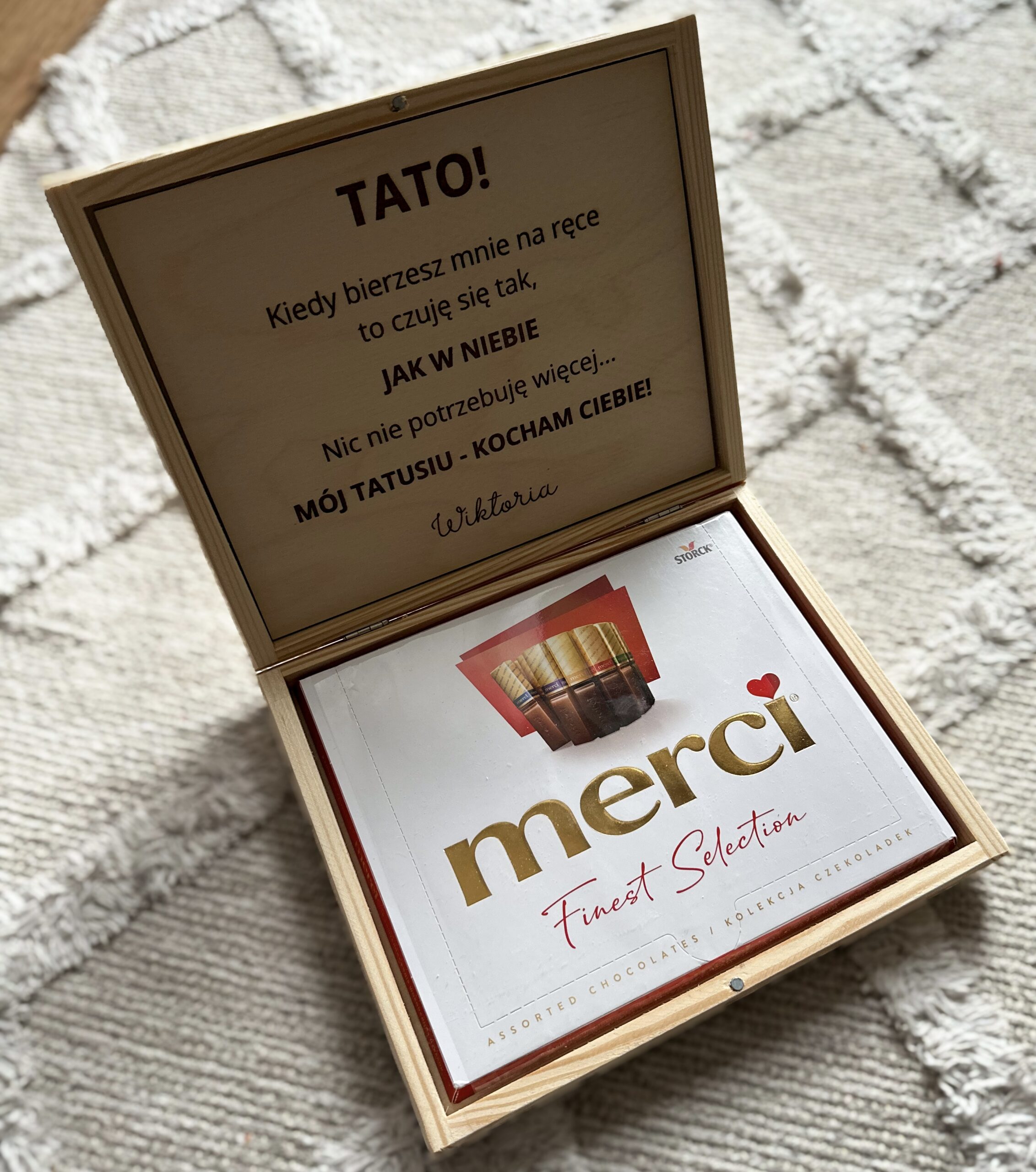 Szukasz wyjątkowego sposobu, aby wręczyć podarunek Tacie z okazji jego święta? Nasze drewniane pudełeczko z życzeniami i czekoladkami w środku to idealny wybór!